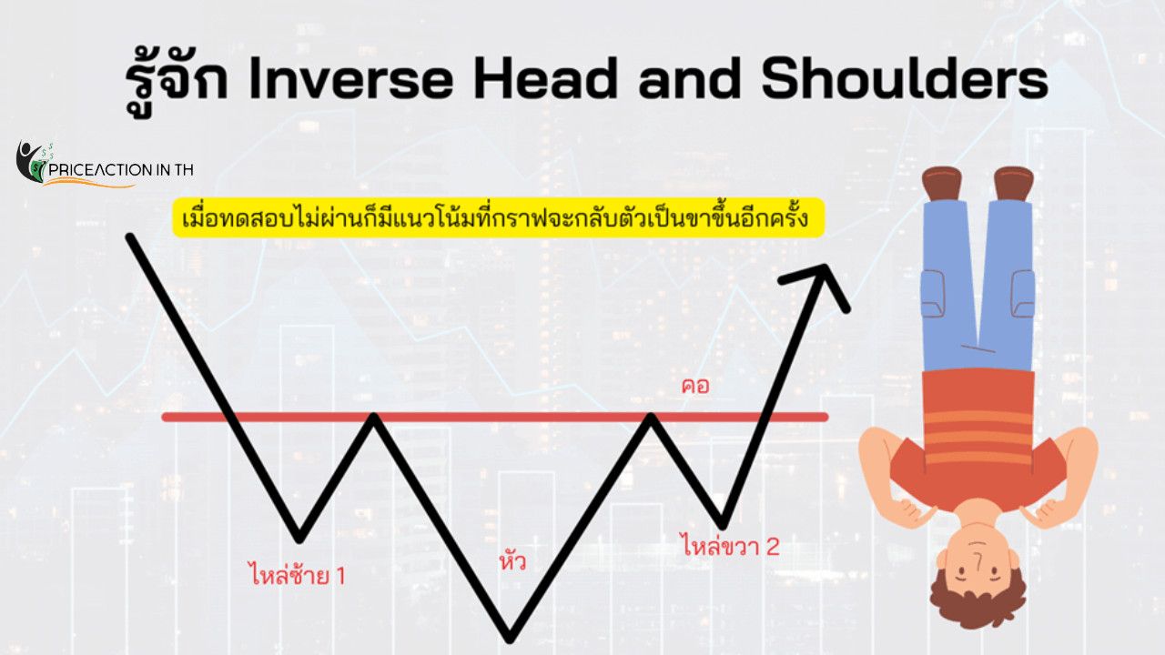 อย่างที่เข้าใจ Head and Shoulders คือ แนวโน้มที่จะเป็นขาลง แต่ Inverse ก็คือ แนวโน้มที่จะเป็นขาขึ้นนั่นเองครับ โดยดูที่รูปแบบโครงสร้างกลับหัว ซึ่งจะอธิบายได้ดังนี้